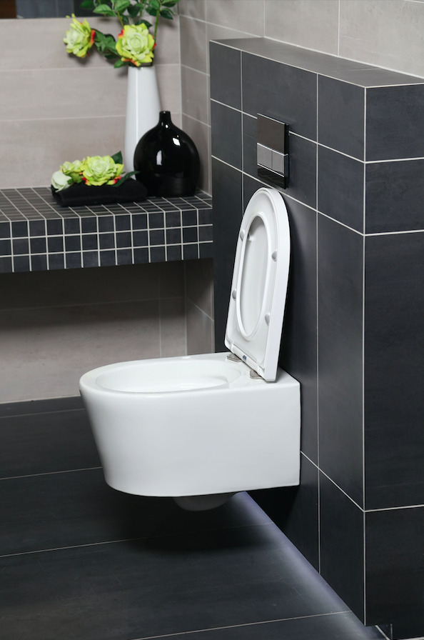 - Swiss Aqua Technologies Cuvette suspendue sans bride et fixations invisibles + abattant frein de chute (SATBRE010RREXP)