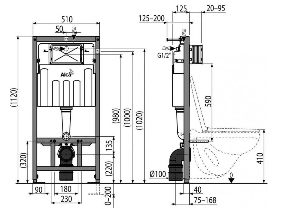 - Alca Bâti-support autoportant pour WC suspendu (AM101/1120-DN100)