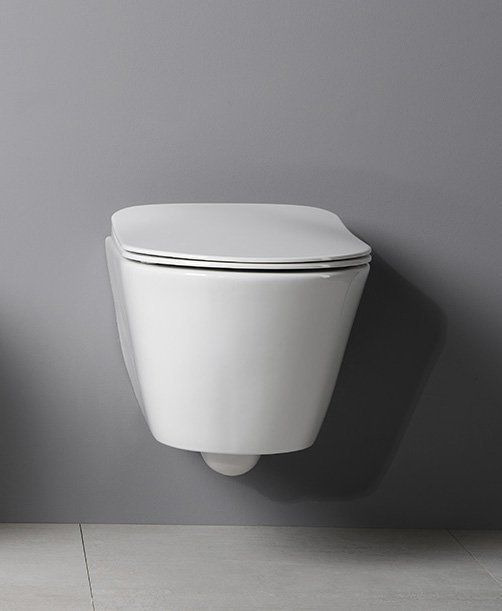- Lucco Avva Cuvette suspendue sans bride avec abattant frein de chute, Blanc (Avvarimless)