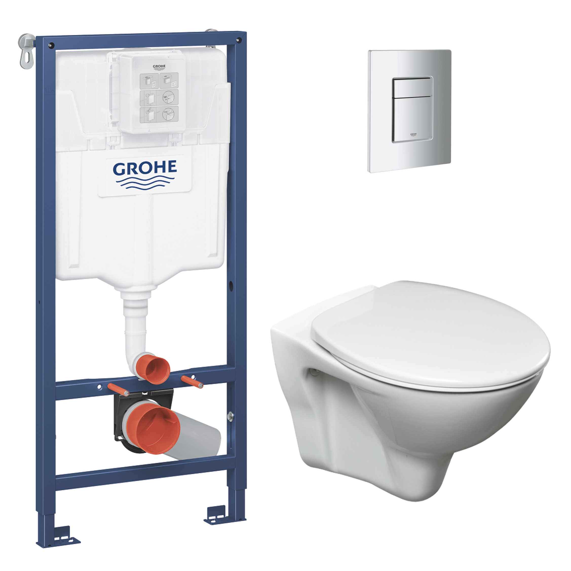 Grohe Pack WC Bâti-support Rapid SL + WC suspendu avec bride Jika Neo + Abattant + Plaque Chrome (GROHE-S-LinePro-1)