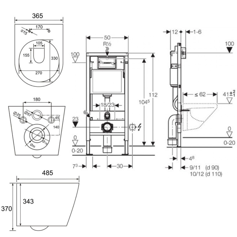 Geberit Ensemble bâti-support Duofix UP100 + réservoir pour WC 112 cm (458.103.00.2) :