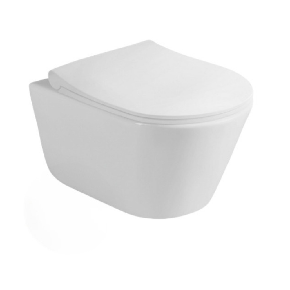 - Lucco Avva Cuvette suspendue sans bride avec abattant frein de chute, Blanc (Avvarimless)