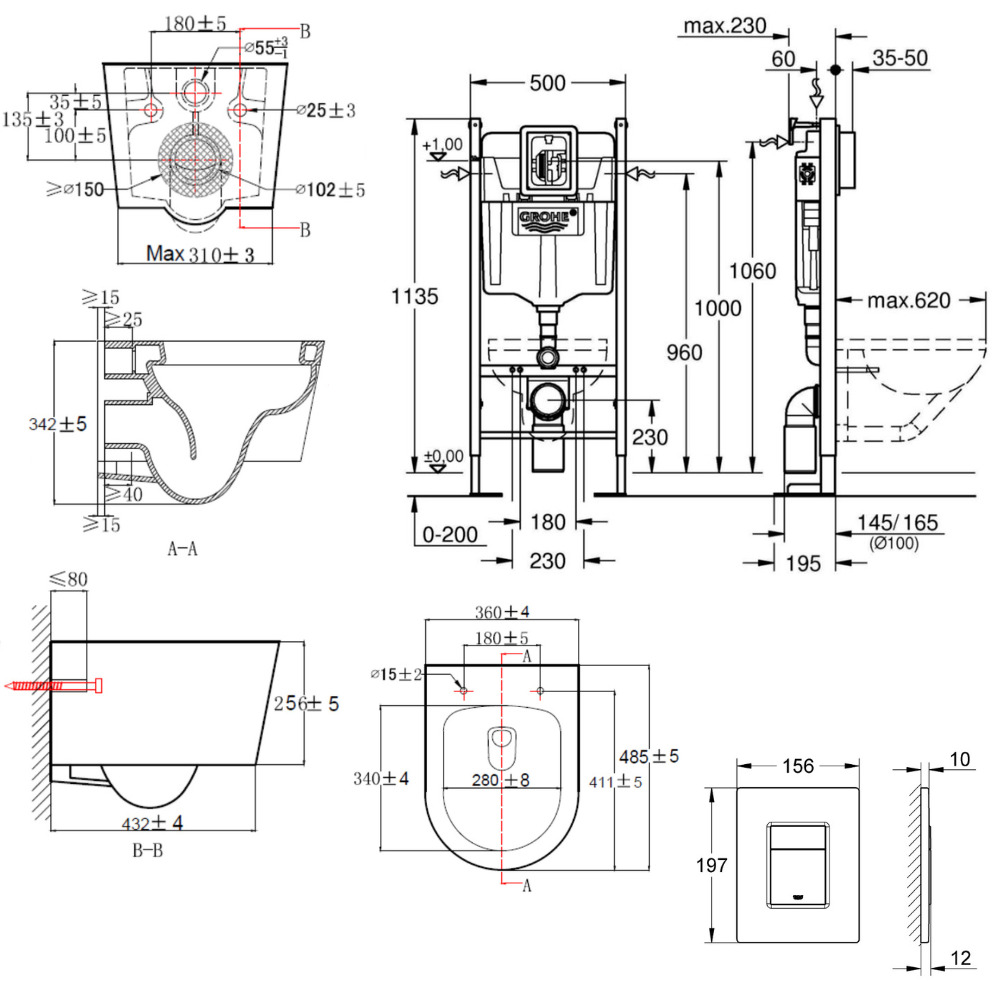 Grohe Pack WC Bâti autoportant + WC sans bride SAT + Abattant softclose + Plaque chrome mat (ProjectSATrimless-5)
