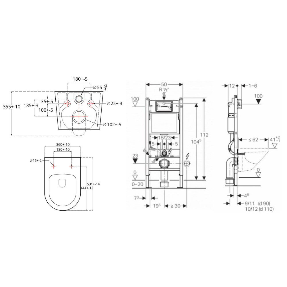 Caractéristiques du Pack Bâti-support Geberit 112cm + WC sans bride Swiss Aqua Technologies Brevis + Abattant ultra-fin, softclose + Plaque blanche (BrevisGeb3) :