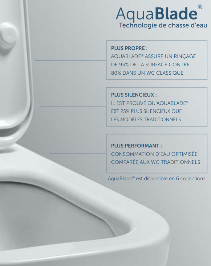 - Cuvette est équipée d'un abattant spécifique à frein de chute