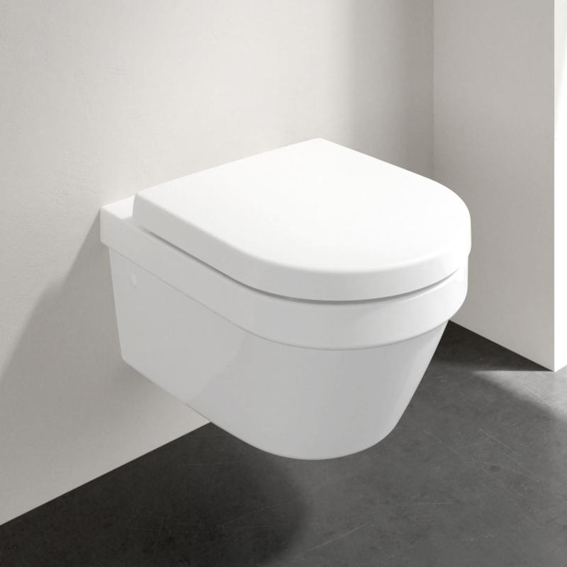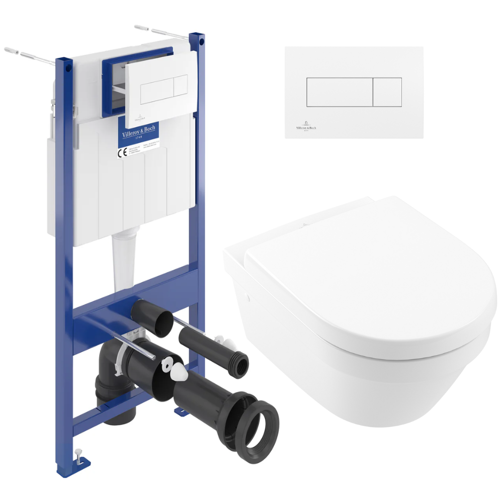 Ce pack WC se compose de la cuvette suspendue sans bride et l’abattant en Duroplast ainsi que du bâti-support Viconnect pro de la marque Villeroy & Boch.