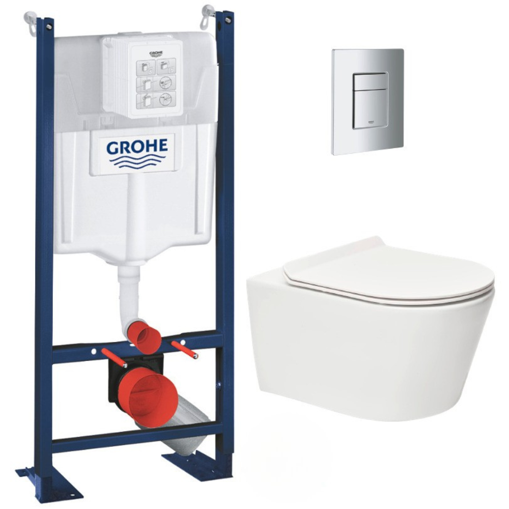 Grohe Pack WC Bâti autoportant + WC sans bride SAT Brevis + Abattant ultra-fin softclose + Plaque chrome mat (ProjectBrevis-5-SP)