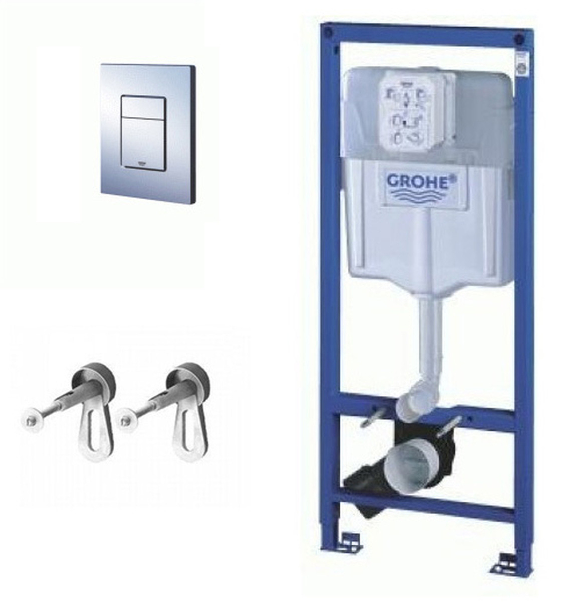 Grohe Pack WC Bâti Rapid SL + Cuvette Villeroy&Boch Architectura sans bide DirectFlush fixations invisibles + Abattant + plaque chrome