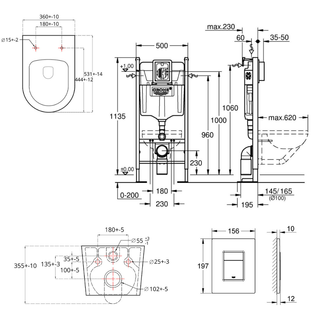 Grohe Pack WC Bâti autoportant + WC sans bride SAT Brevis + Abattant ultra-fin softclose + Plaque chrome (ProjectBrevis-1)
