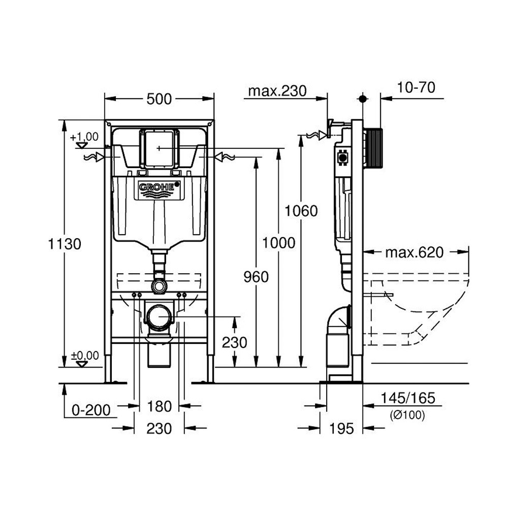 - Grohe RAPID SL BÂTI SUPPORT AUTOPORTANT POUR WC, 1.13 M (39981000)