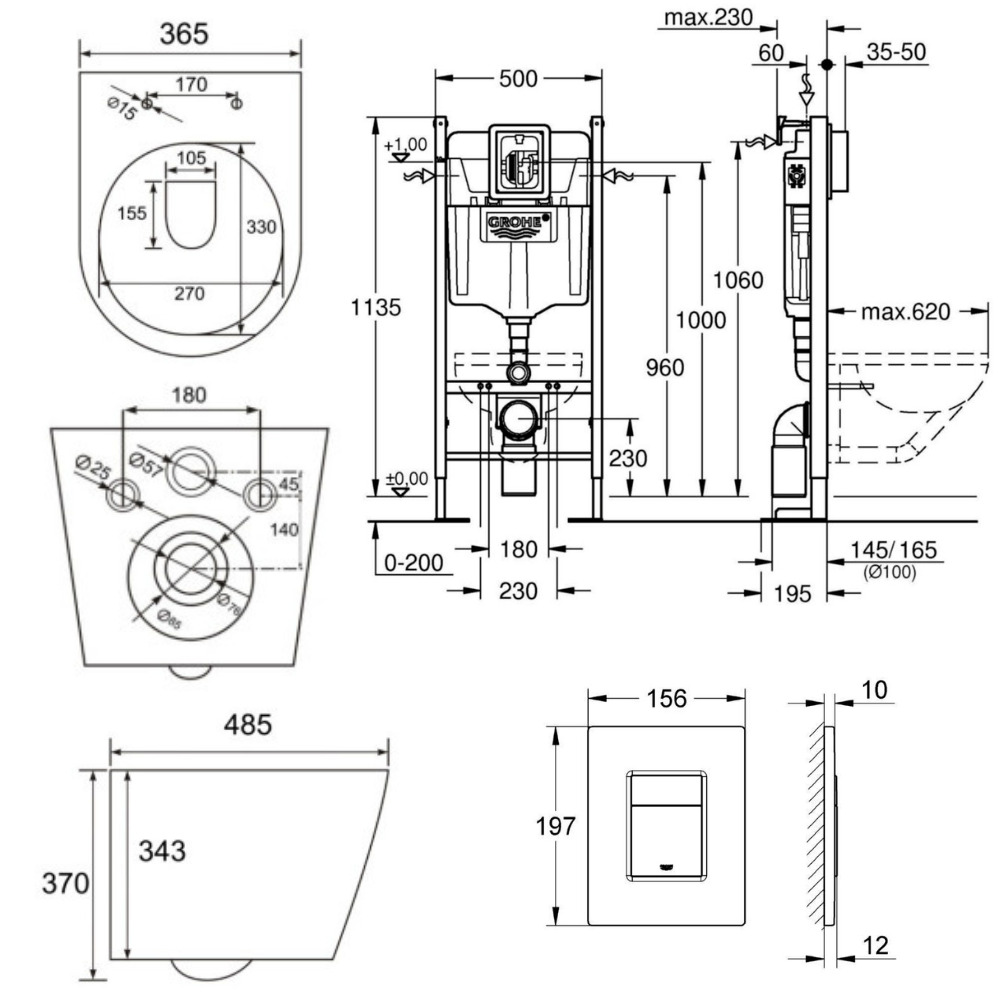 - Grohe RAPID SL Project bâti support autoportant pour WC, 1.13 M (39145000)