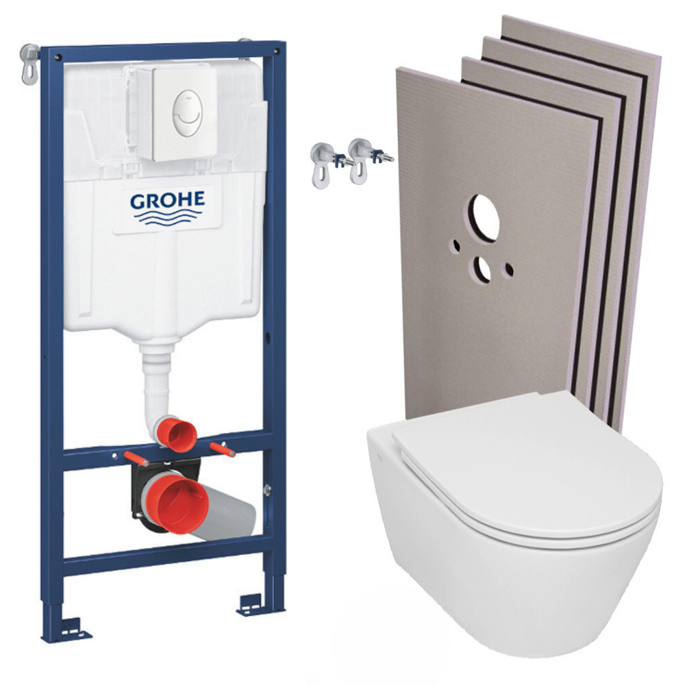 Grohe Pack WC Bâti-support Rapid SL + WC sans bride Serel SP26 + abattant softclose + Plaque blanc alpin + Set d'habillage