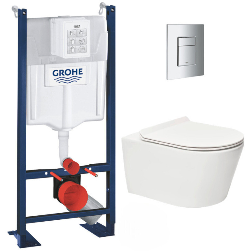 Grohe Pack WC Bâti autoportant + WC sans bride SAT Brevis + Abattant ultra-fin softclose + Plaque chrome (ProjectBrevis-1-SP)