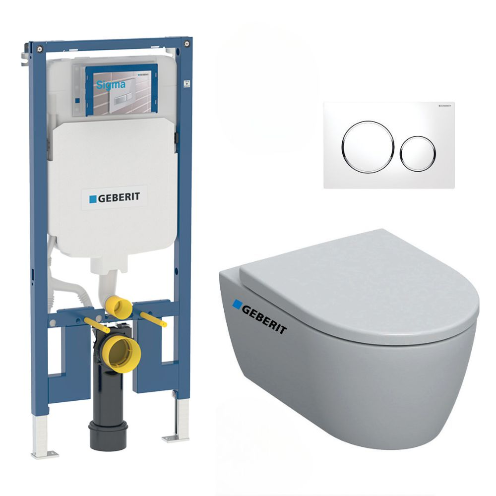Pack WC Bati-support Geberit Duofix extra-plat + WC sans bride Geberit iCon + Abattant softclose + Plaque blanche (SLIM-iCon-C)