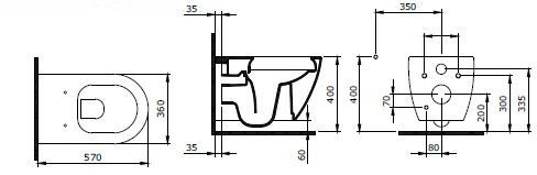 - Cadre convenant aux cuvettes de WC avec petite surface d'appui (avec revêtement mural résistant à la pression)