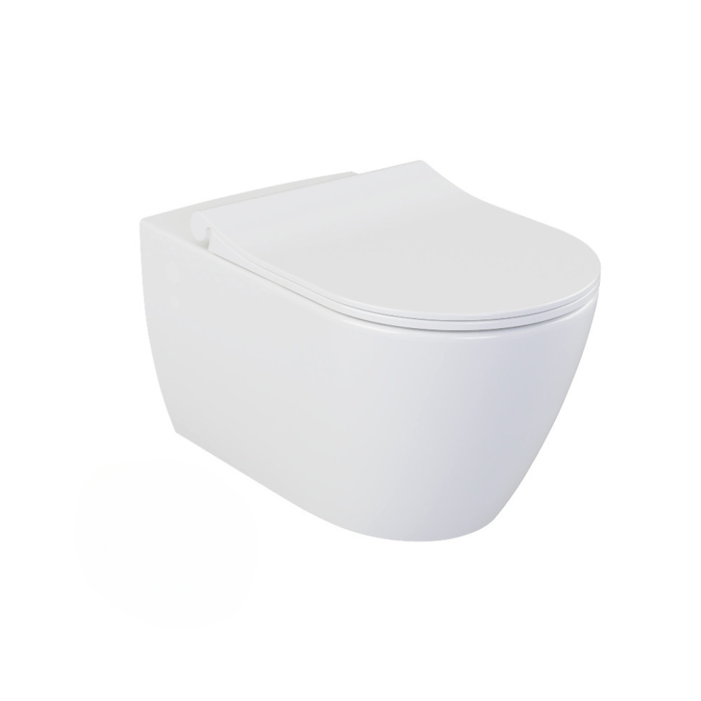 Caractéristiques du Pack WC Bâti-support extra-plat UP720 + Cuvette suspendue sans bride Bello + Abattant frein de chute + Plaque blanche (SLIM-Bello-N) :