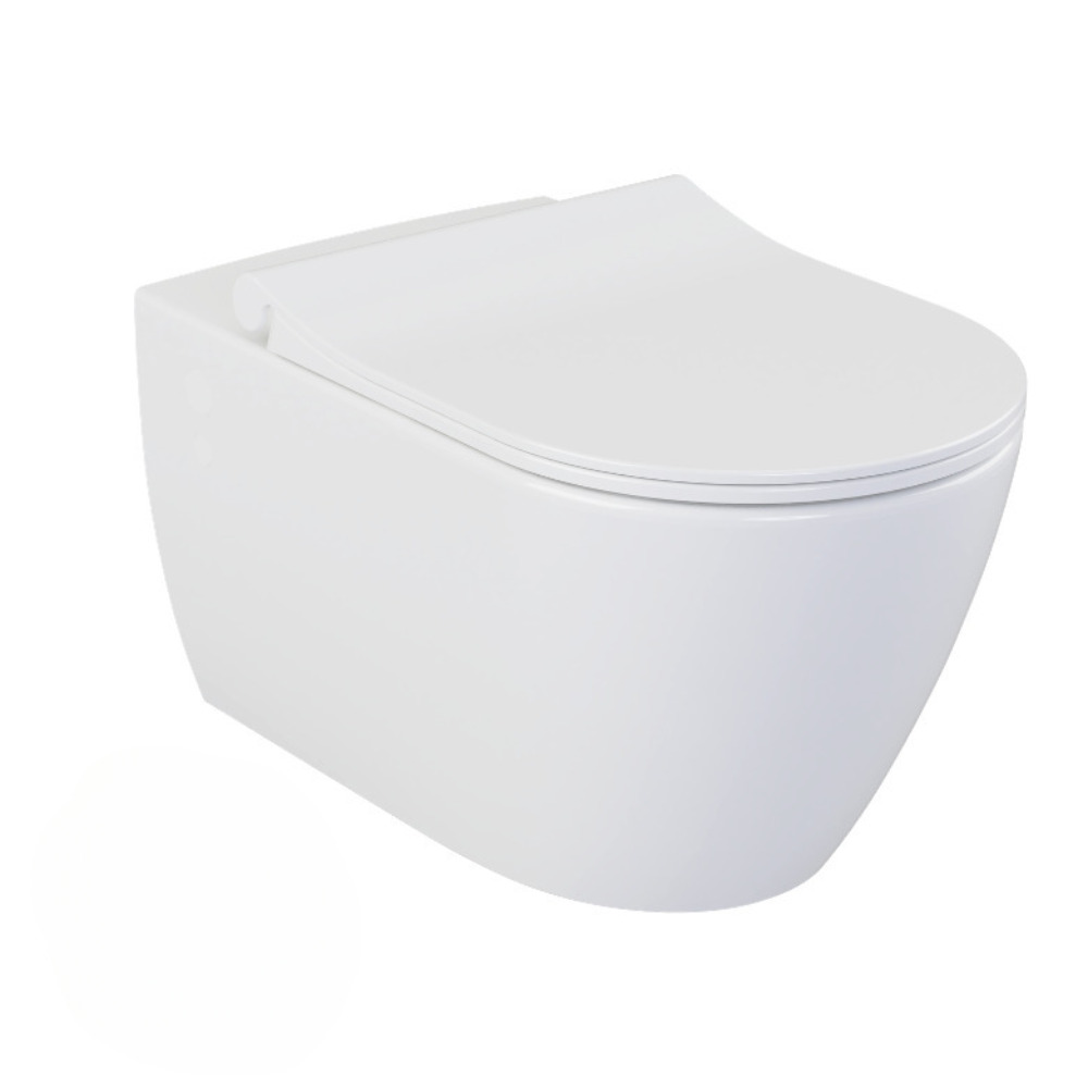 WC suspendu sans bride Bello + Abattant frein de chute, Blanc (BelloRimless) :