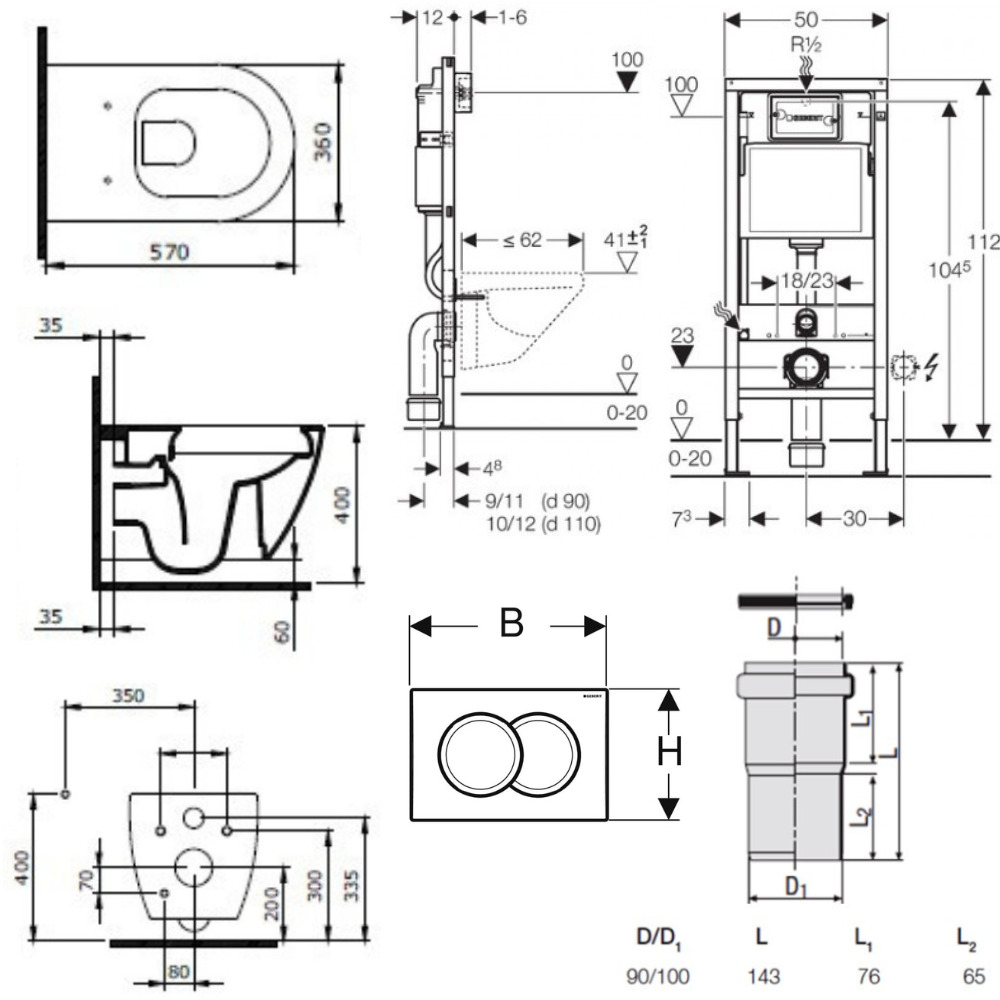 Geberit Ensemble bâti-support Duofix UP100 + réservoir pour WC 112 cm (458.103.00.2) :