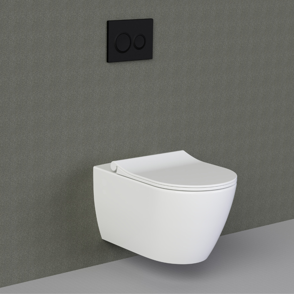 - LIVEA Bello Cuvette suspendue sans bride, fixations invisibles + Abattant frein de chute, Blanc (BelloRimless)