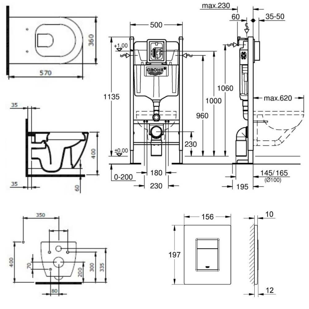 - Grohe RAPID SL Project bâti support autoportant pour WC, 1.13 M (39145000)