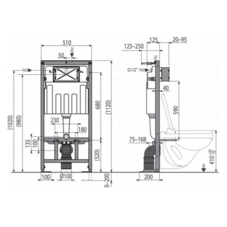 - Pour le montage de cuvettes WC suspendues avec un pas de raccordement de 180 mm ou 230 mm