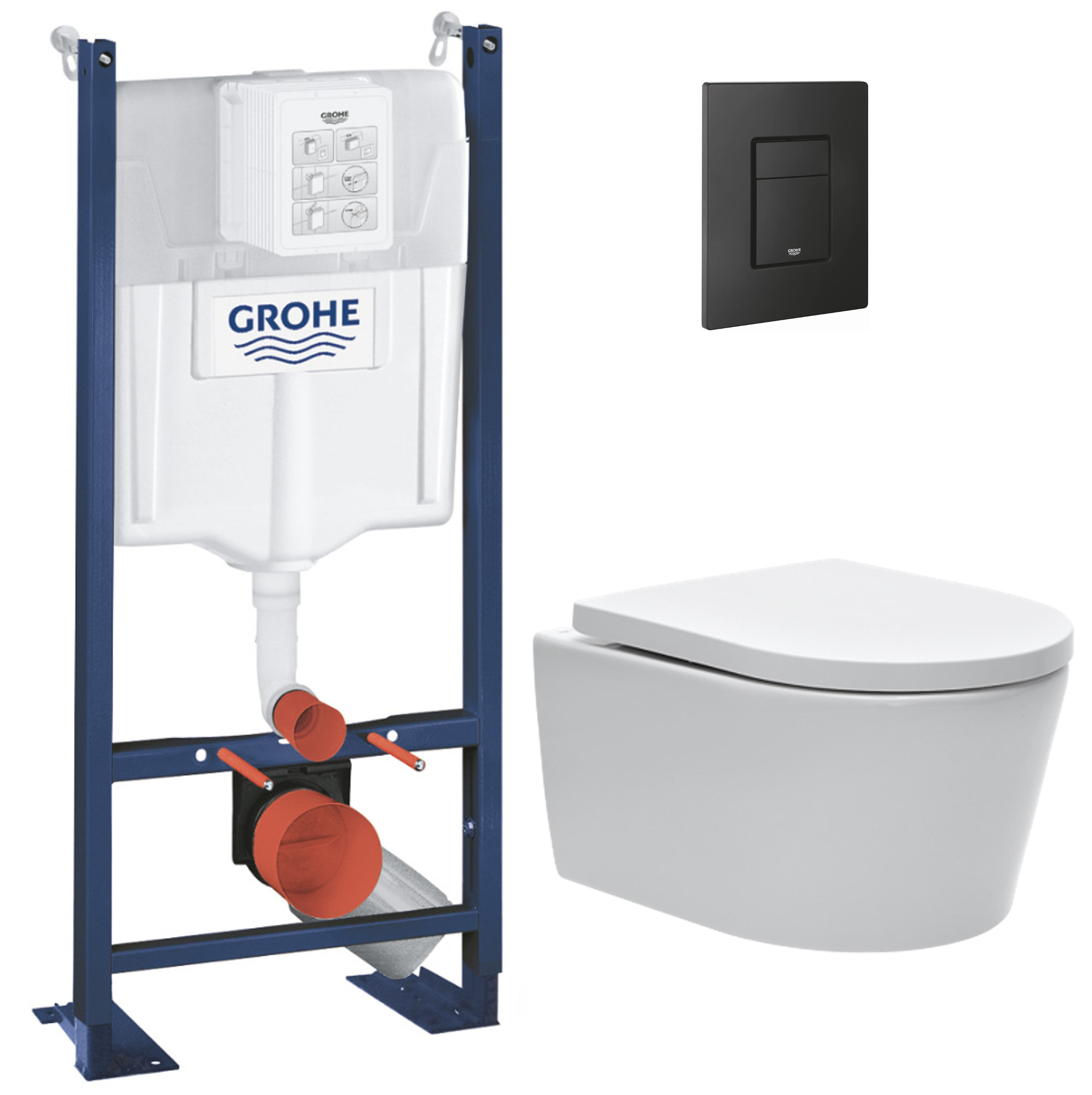 Grohe Pack WC Bâti autoportant Rapid SL + WC SAT sans bride et fixations invisibles + Plaque Noir mat (ProjectSATrimless-KF0)