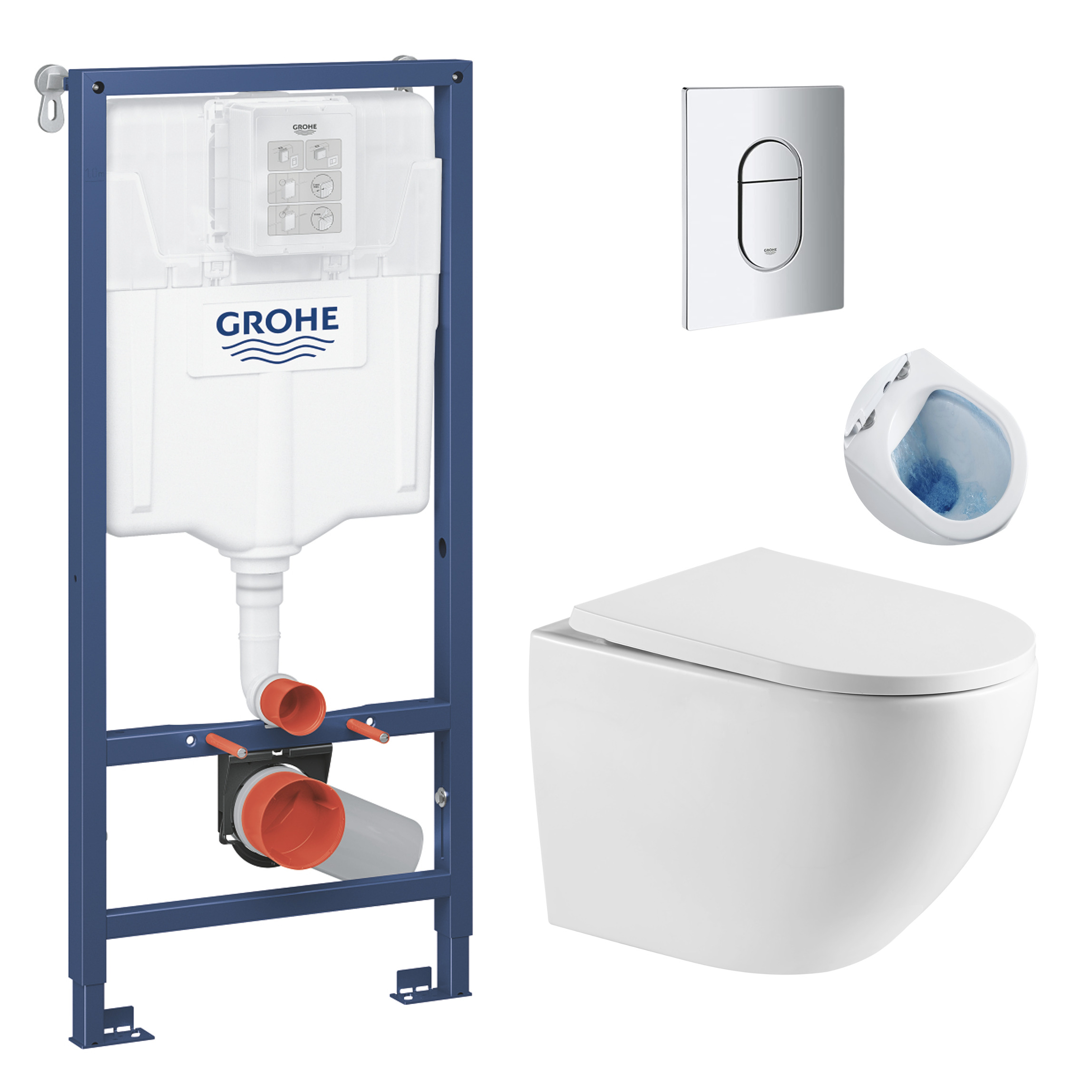 Grohe Pack WC Bâti-support + WC sans bride SAT Fusion + Abattant softclose + Plaque Chrome