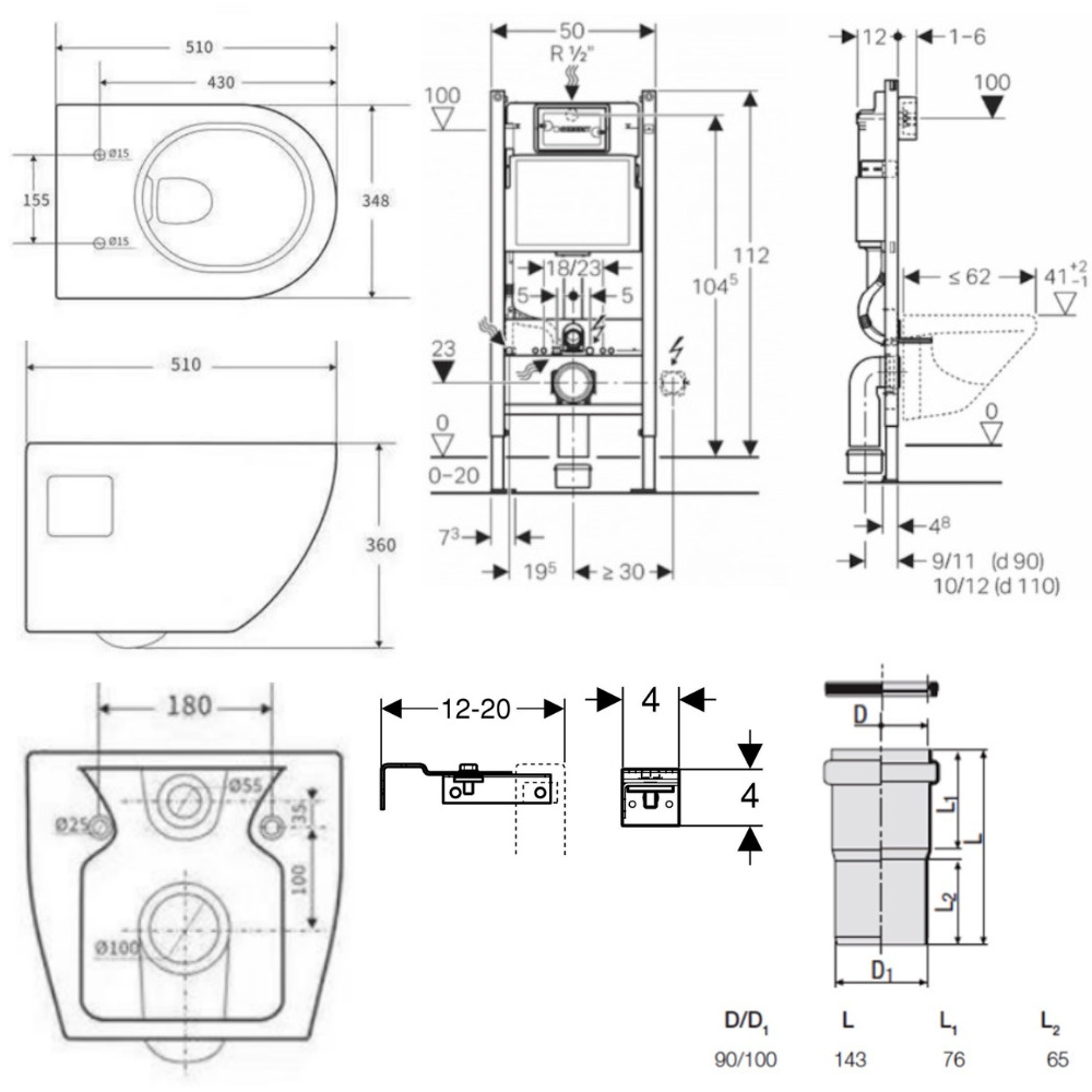 Pack WC Bati Geberit + WC sans bride Swiss Aqua Technologies + Abattant SoftClose + Plaque + habillage (ProjectGeb3-sabo
