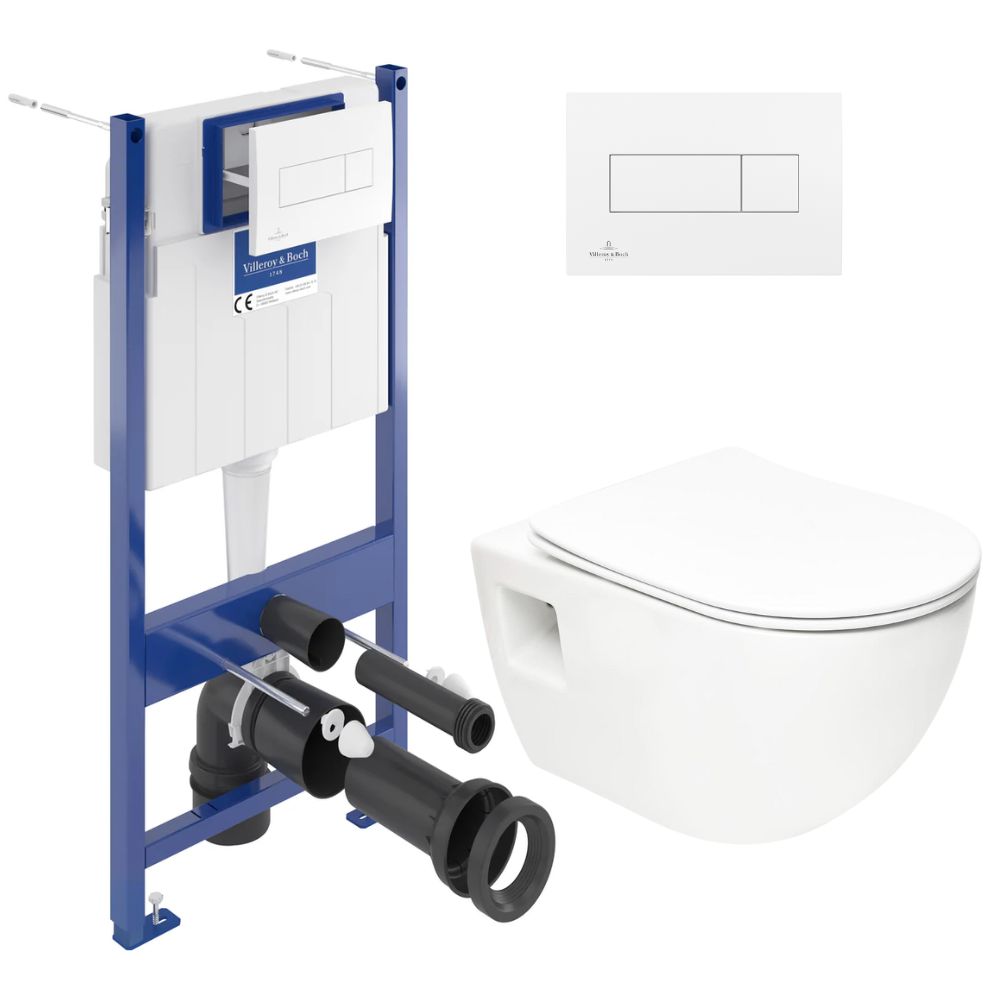 Caractéristiques du Pack WC Bâti-support Villeroy & Boch ViConnect+ WC sans bride SAT + Abattant SoftClose + Plaque Blanche (ViConnectProject-2) :