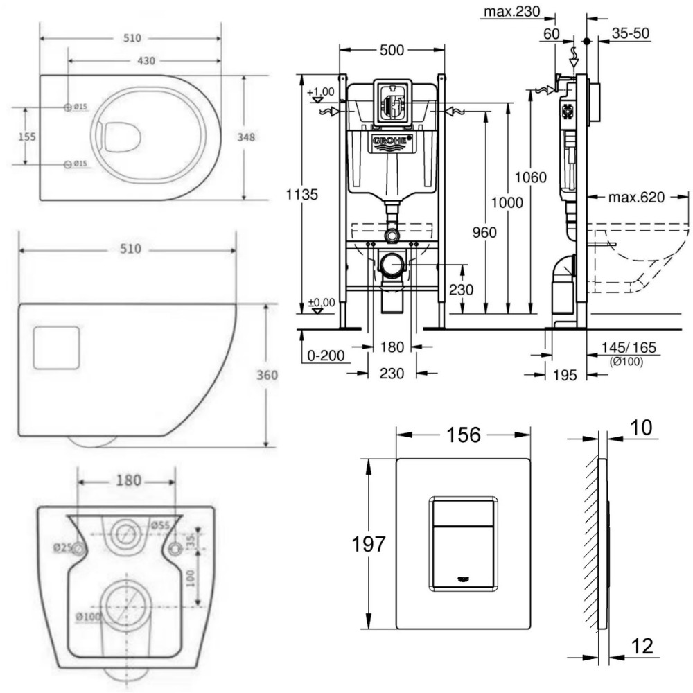 Caractéristiques du Pack WC Bâti Autoportant Rapid SL + WC sans bride SAT + Abattant SoftClose + Plaque Chrome + Set habillage (Project2-1-sabo) :