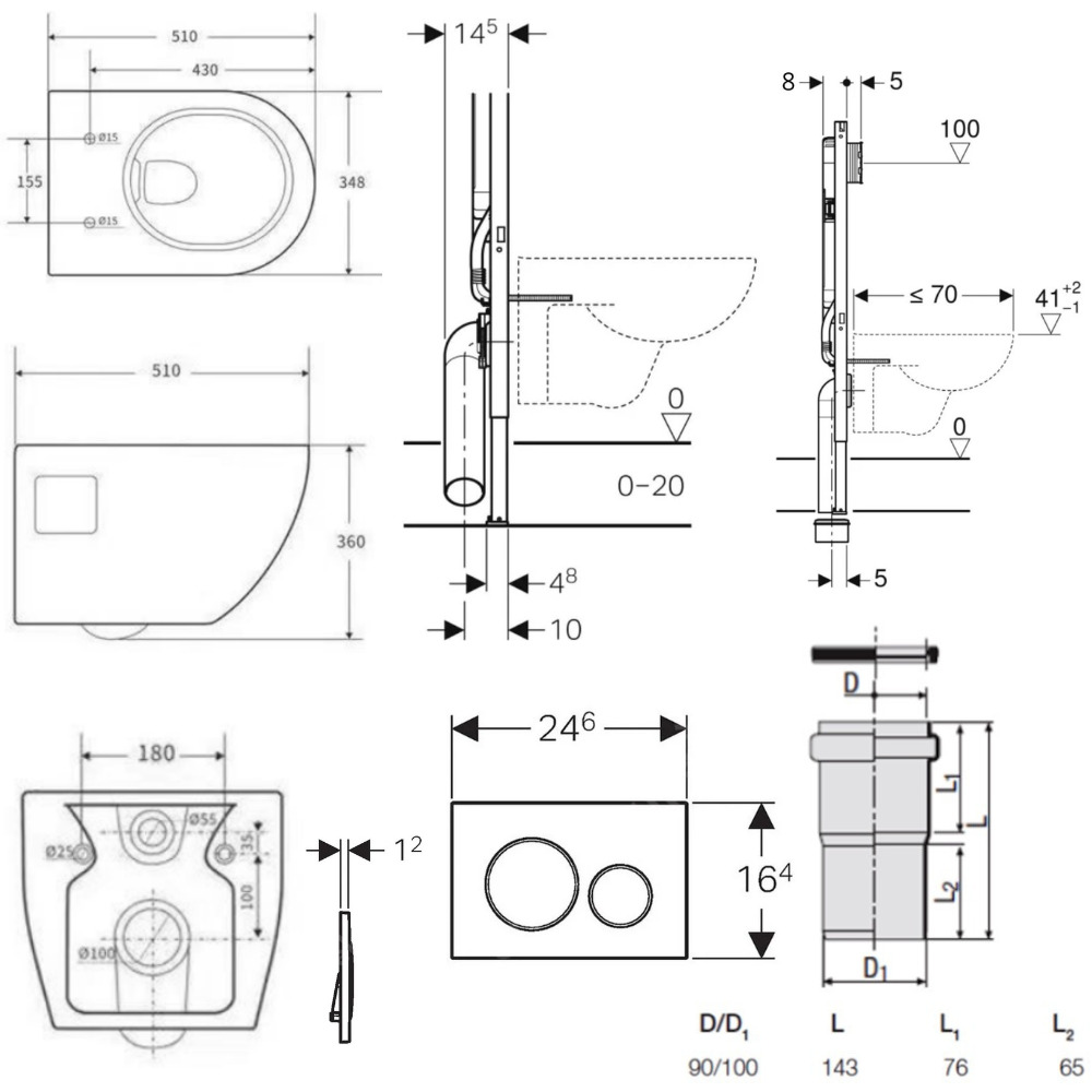 - Cadre convenant aux cuvettes de WC avec petite surface d'appui (avec revêtement mural résistant à la pression)