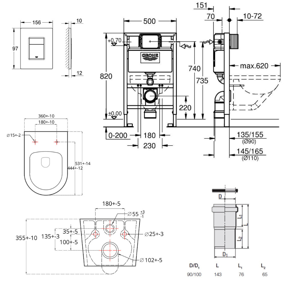 Complétez cet ensemble avec la plaque de commande WC Grohe Skate Cosmopolitan en chrome (38732000), ajoutant une touche d'élégance et de modernité à votre salle de bain.