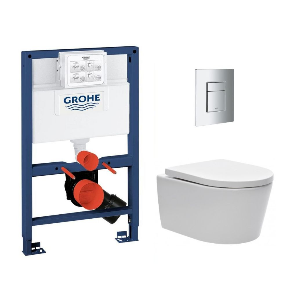 Grohe Pack WC Bâti-support Rapid SL + WC sans bride SAT Brevis + Plaque Chrome (RapidSL082-Brevis-1)