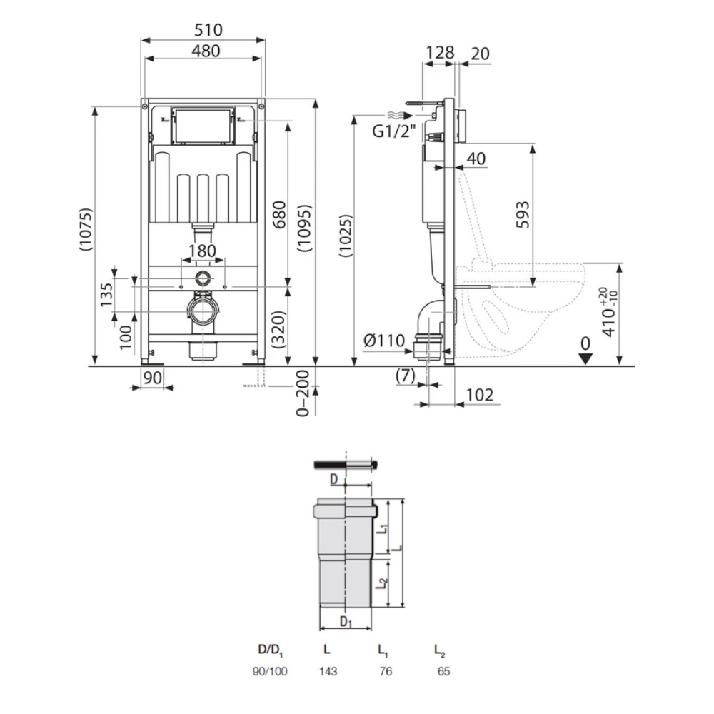 Redi Manchon de raccordement Ø 90/100 MM pour Rapid SL ou Geberit (VS0564190)