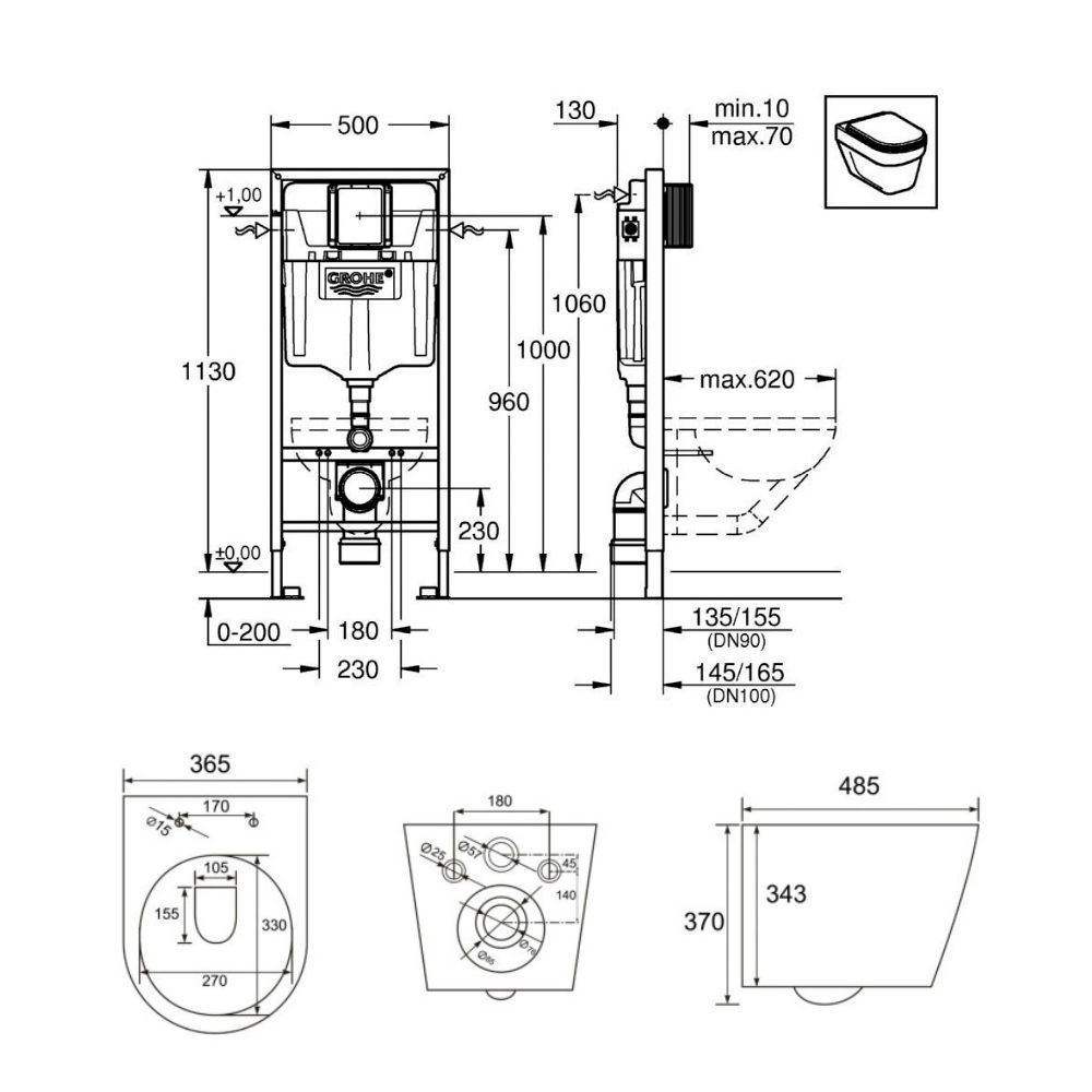 Grohe Pack Bati-support+WC suspendu sans bride+abattant frein de chute+Set de montage (RapidSL-Infinitio-KF0-sabo)