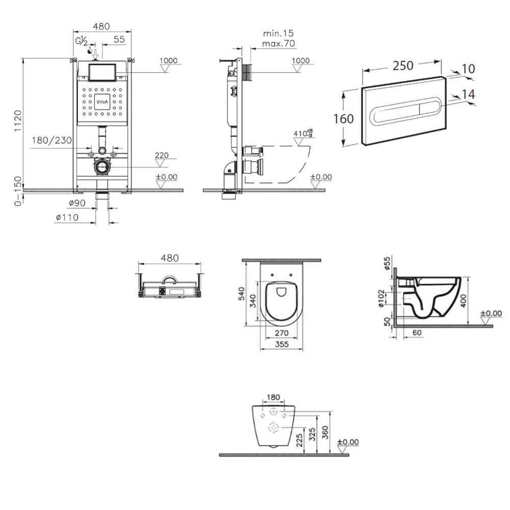 Caractéristiques du V-Fix Core Pack WC bâti-support + WC sans bride Vitra S60 + Abattant SoftClose + Plaque blanc (V-FixS60-4) :