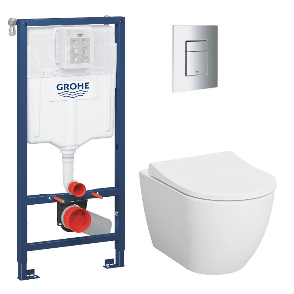 Grohe Pack WC Bâti-support Rapid SL + WC sans bride Vitra S60 + Abattant SoftClose + Plaque chrome (RapidSL-S60-1)