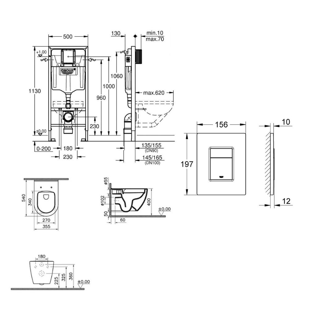 - Grohe Set Bati-support Rapid SL avec fixations murales et plaque de déclenchement noir mat (38811KF0)