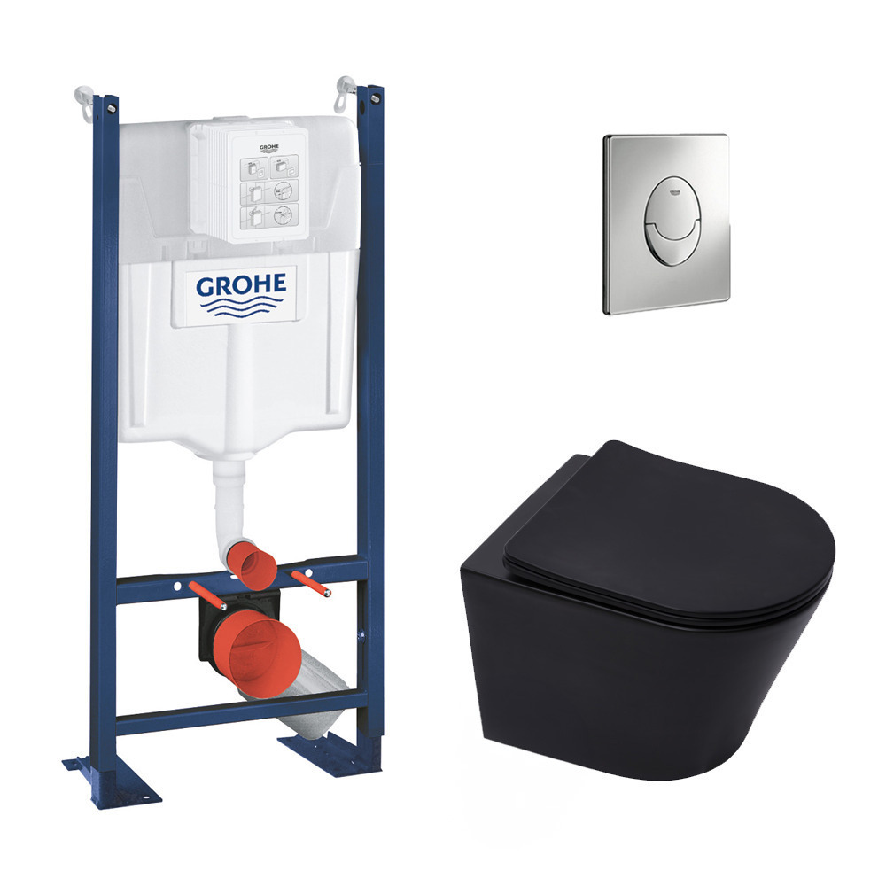 Caractéristiques du Pack WC Bâti-autoportant Rapid SL + WC Infinitio sans bride noir mat + Abattant softclose + Plaque chrome + Set d'isolation phonique (ProjectBlackInfinitio-2SET) :