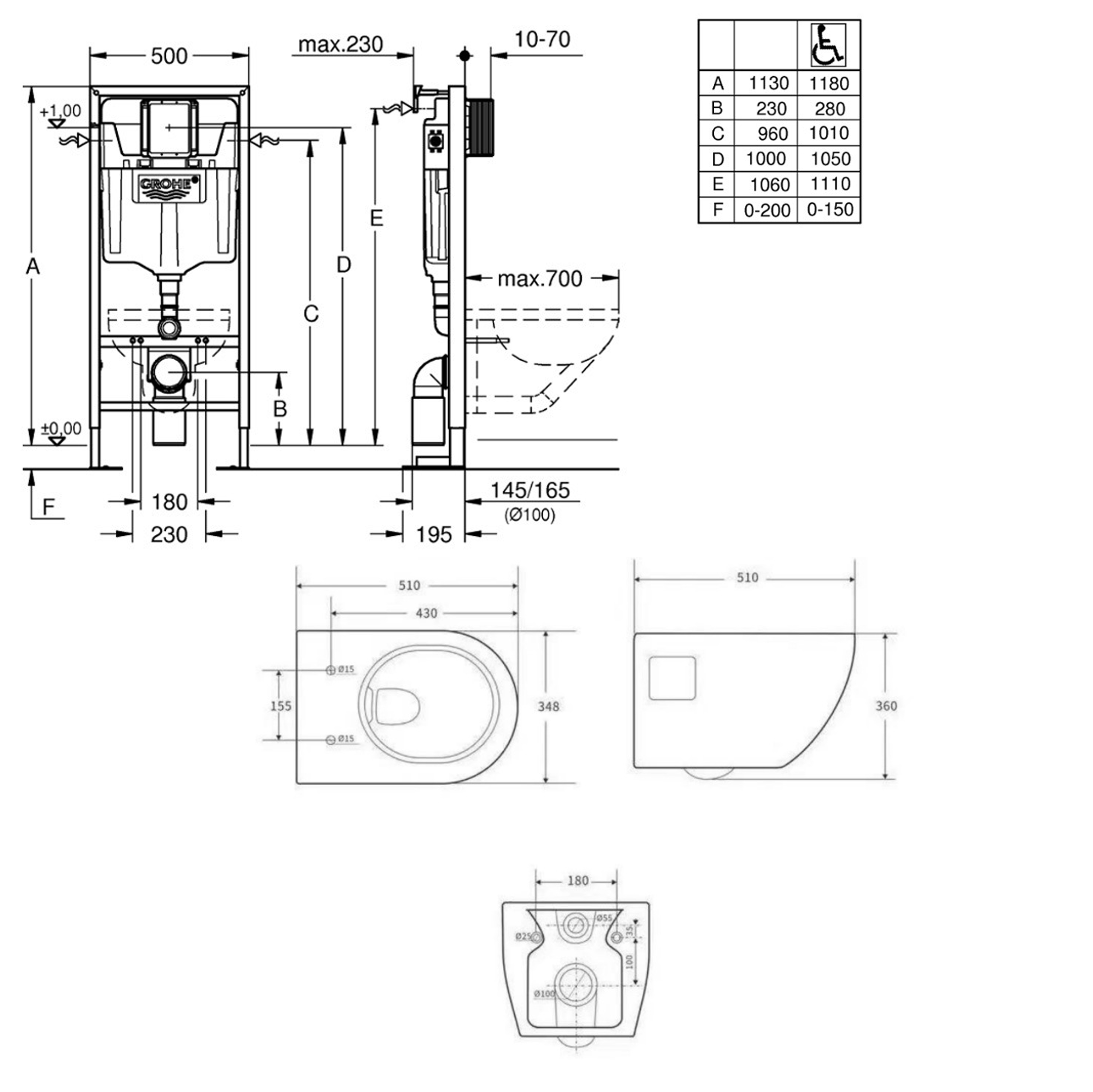 - Grohe SOLIDO Bâti-support autoportant pour WC, 1,13 M (39981000)