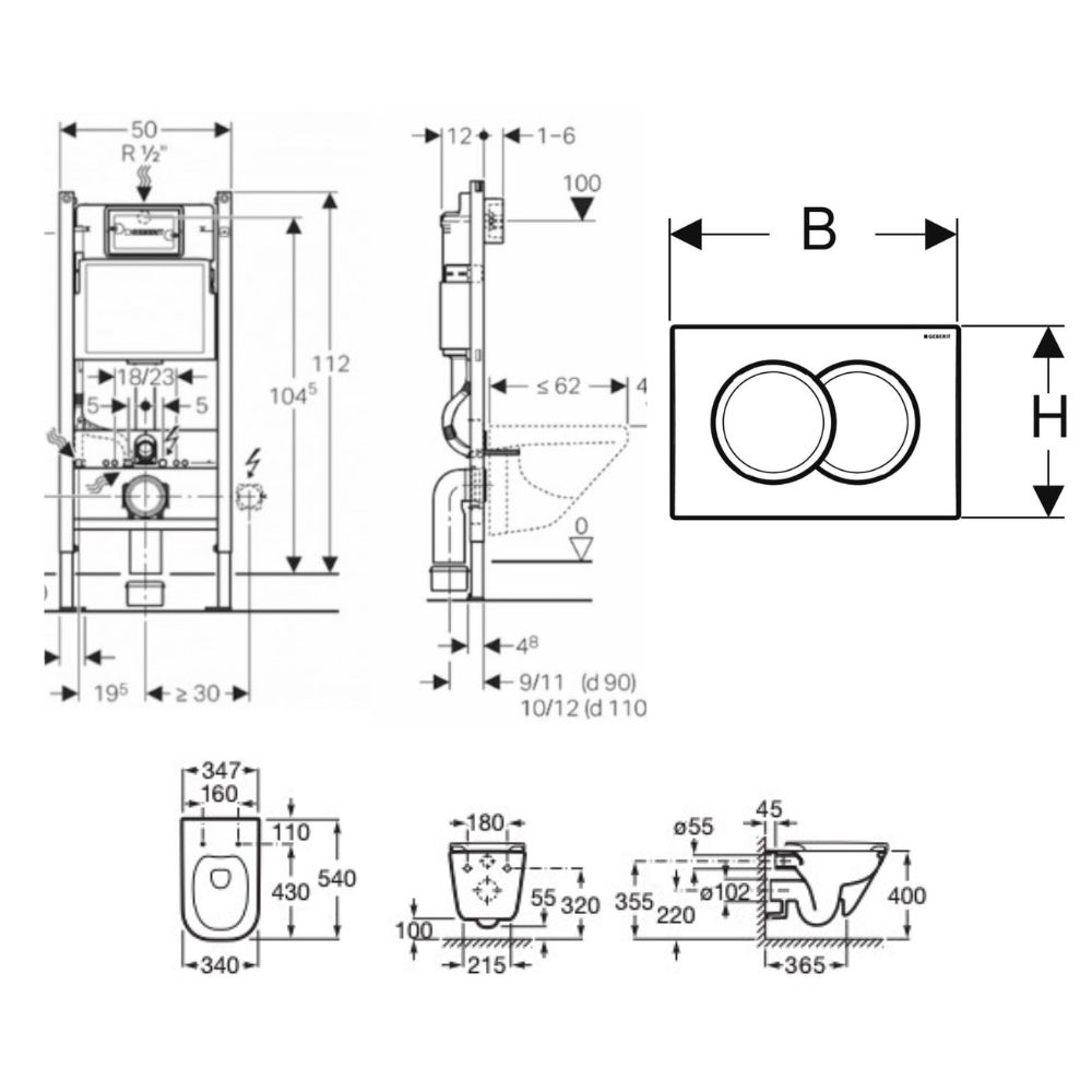 Caractéristiques de Geberit Delta Pack bâti-support Duofix 112cm + Plaque de commande Delta01, Blanche + Fixations murales (111.154.11.3):