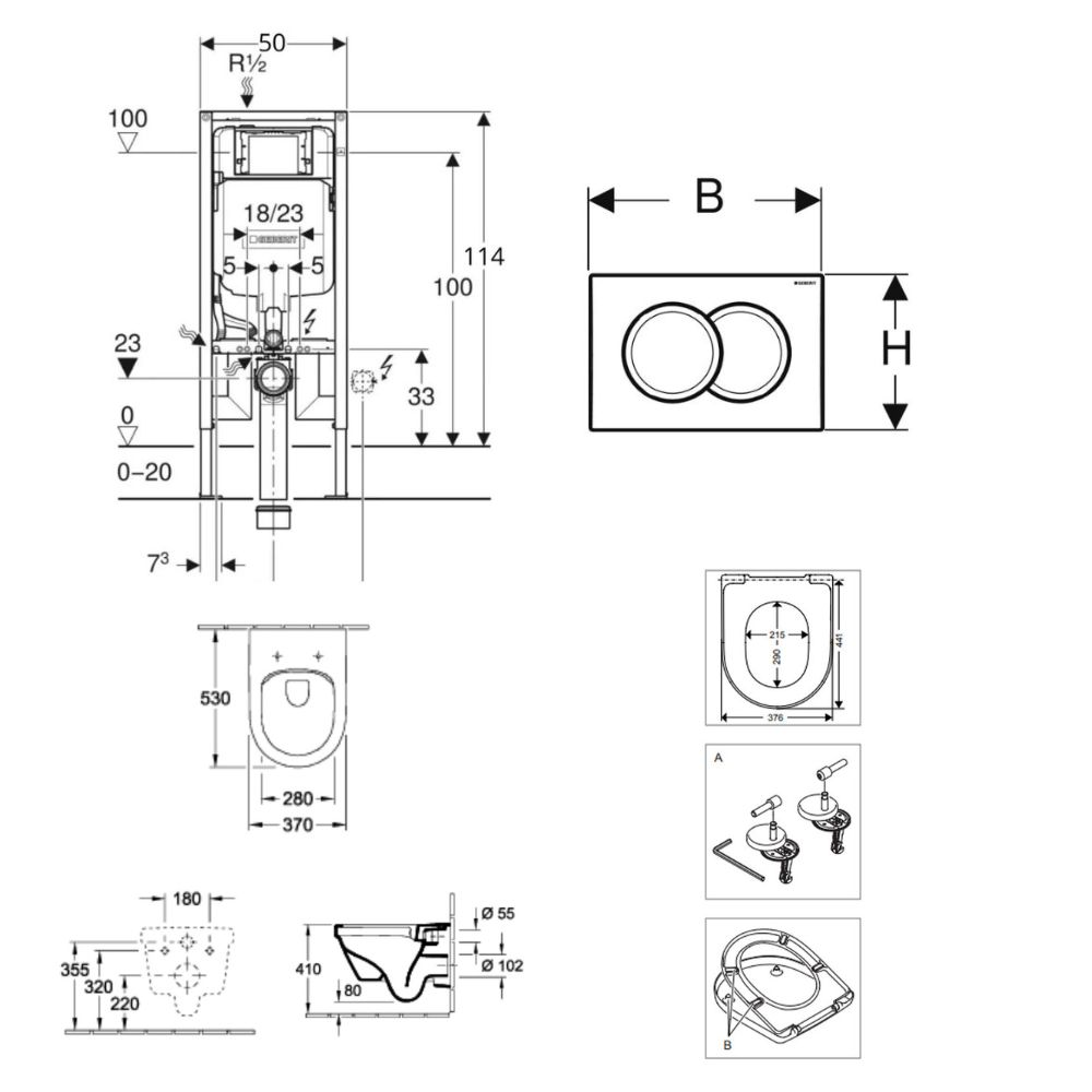 - Geberit Duofix Bâti-support extra-plat 114 cm UP720, gain de place, avec réservoir à encastrer Sigma 8 cm (111.796.00.1)