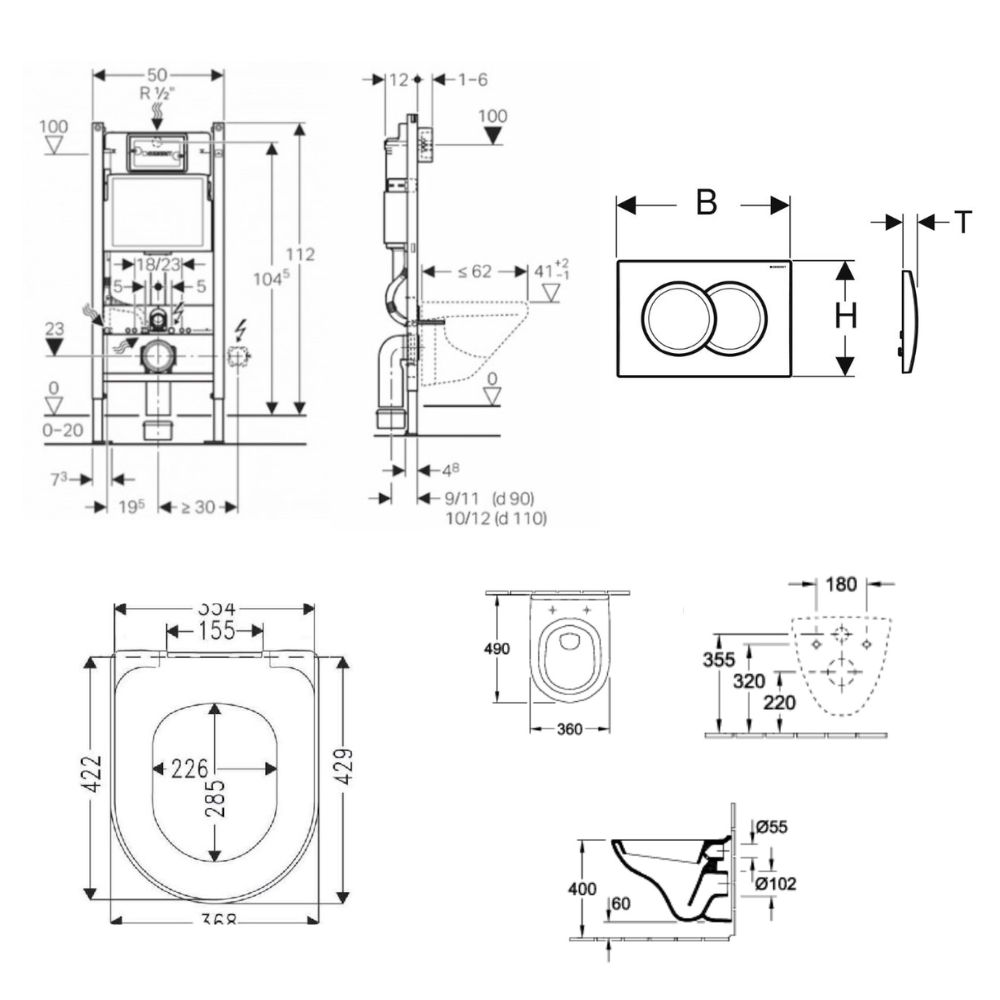 Caractéristiques de Geberit Delta Pack bâti-support Duofix 112cm + Plaque de commande Delta01, Blanche + Fixations murales (111.154.11.3):