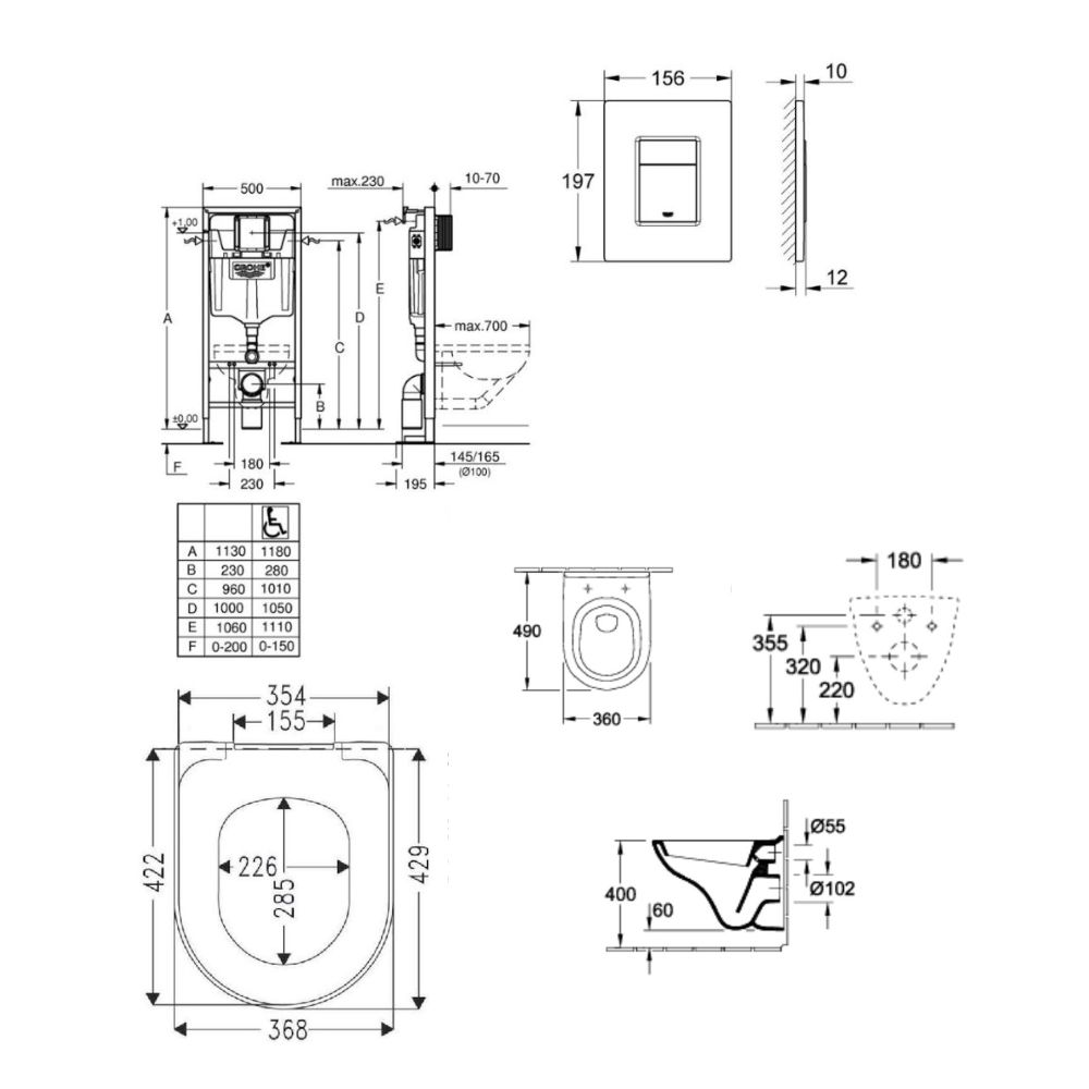 Caractéristiques du Pack SOLIDO Bâti-support + Cuvette suspendue + Abattant + Plaque chrome (AUTOPORTANT-O.NOVO49-1) :