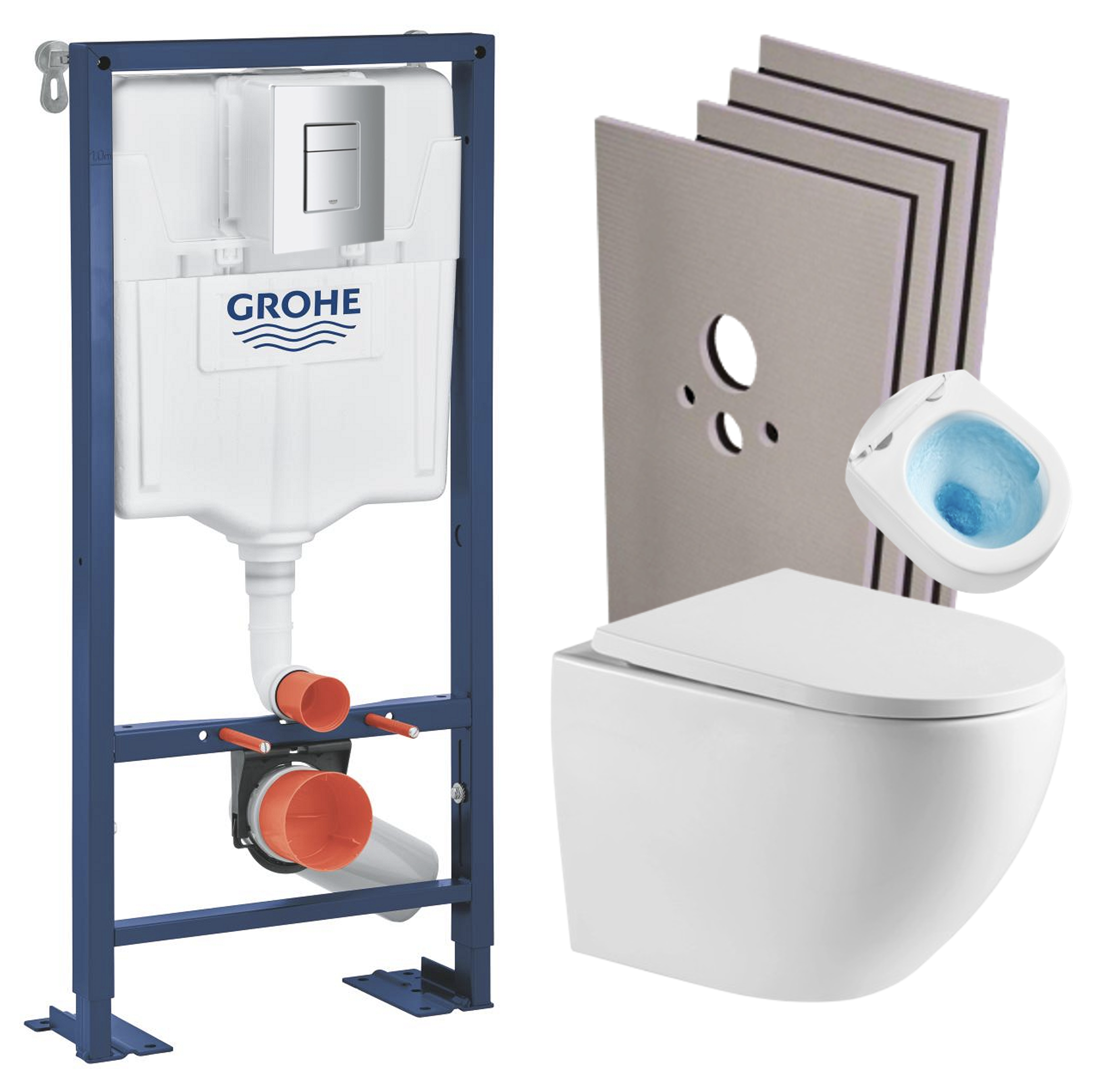 Grohe SOLIDO Pack Bâti-support + WC suspendu + Plaque chrome + Set de montage (AUTOPORTANT-FUSIONTQ-1-SABO)