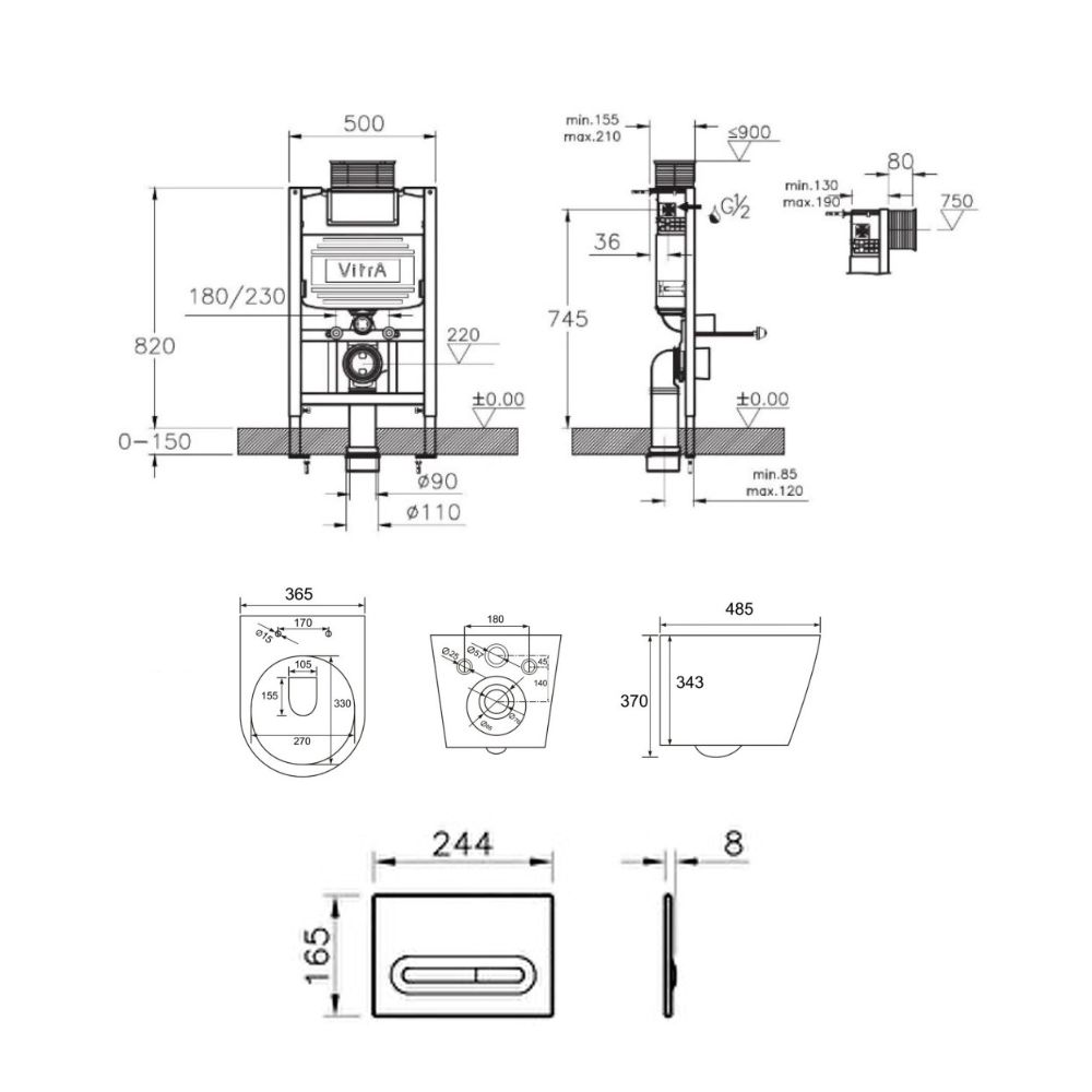 Caractéristiques du Bâti support Vitra 82cm + WC sans bride SAT + Abattant softclose + Plaque Chrome mat (VUNI82INFINITIO-5) :