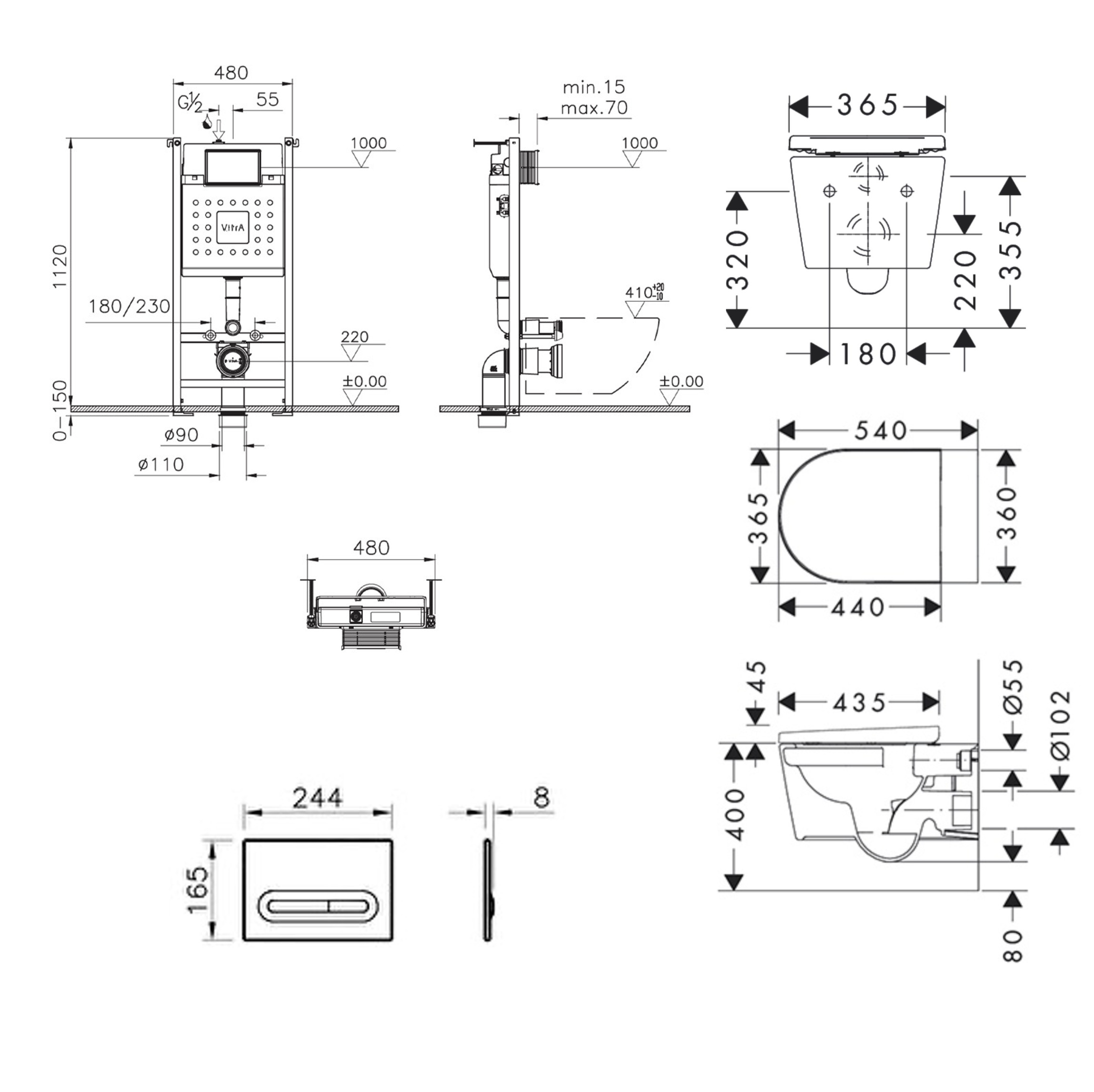 Caractéristiques du V-Fix Core Pack WC bâti-support + WC sans bride Hansgrohe EluPuraS + Abattant SoftClose + Plaque chrome mat (VFIXPURA5) :
