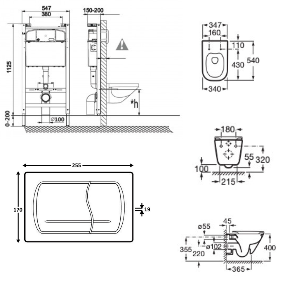 Caractéristiques du Pack WC Bâti-support Roca Active + Cuvette sans bride + Abattant slim SoftClose + Plaque chromé mat (ROCAACTIVEGAP-2) :