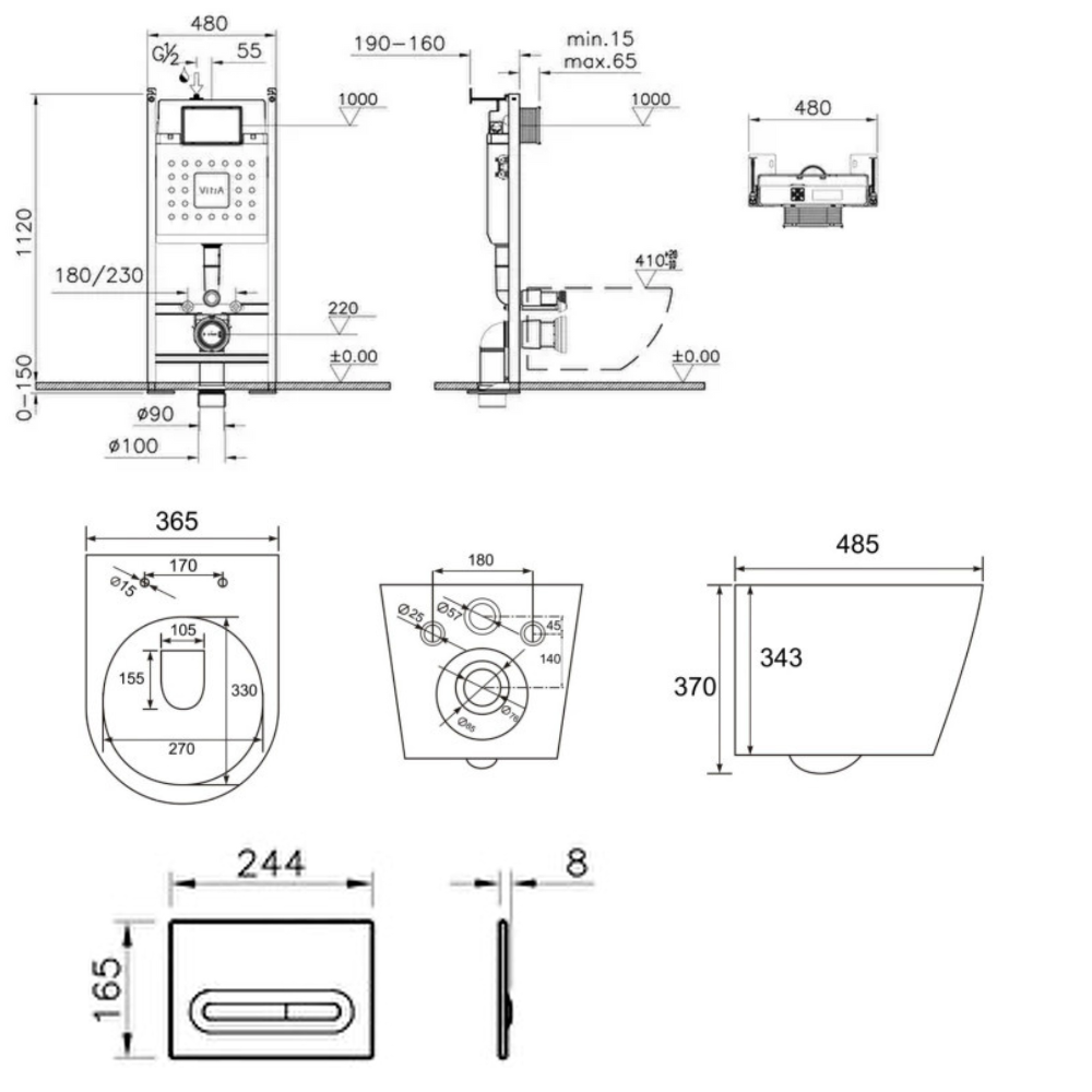 Vitra Pack WC Bâti-support autoportant V-Fix Core + WC SAT sans bride et fixations invisibles + Plaque chrome mat (VFTFINFI5)