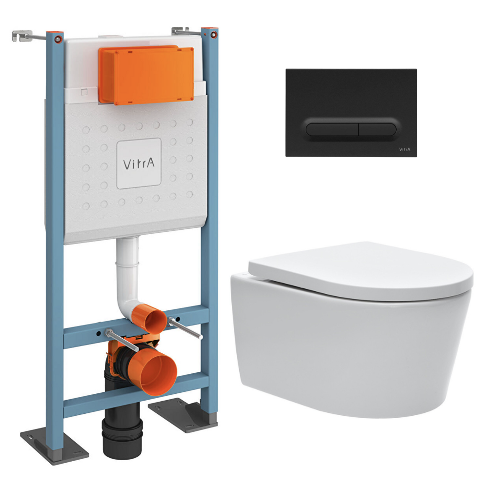 Vitra Pack WC Bâti-support autoportant V-Fix Core + WC SAT sans bride et fixations invisibles + Plaque noire mat (VFTFSAT6)
